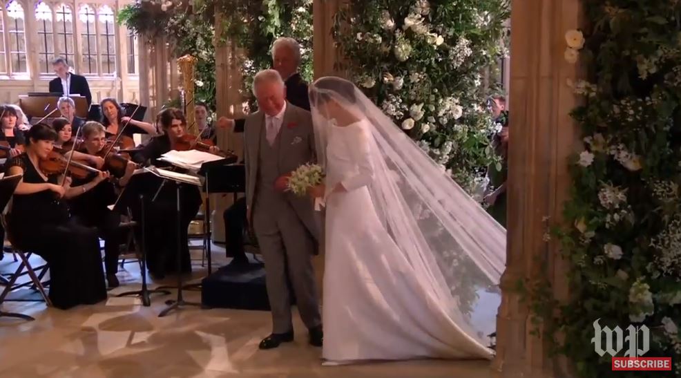 Невеста зайдет в часовню в сопровождении детей – девочек с цветами и пажей. Половину пути к алтарю она пройдет в одиночестве, после чего ее встретит принц Чарльз (отец жениха заменит отца невесты, который после операции на сердце не смог присутствовать на церемонии). Принц Уэльский подведет невесту к Гарри.