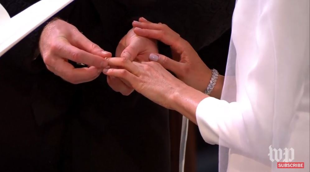 Молодожены выбрали ювелиров Cleave and Company для создания своих свадебных колец. Кольцо Меган было изготовлено из куска валлийского золота, который ей подарила Ее Высочество королева Елизавета II.