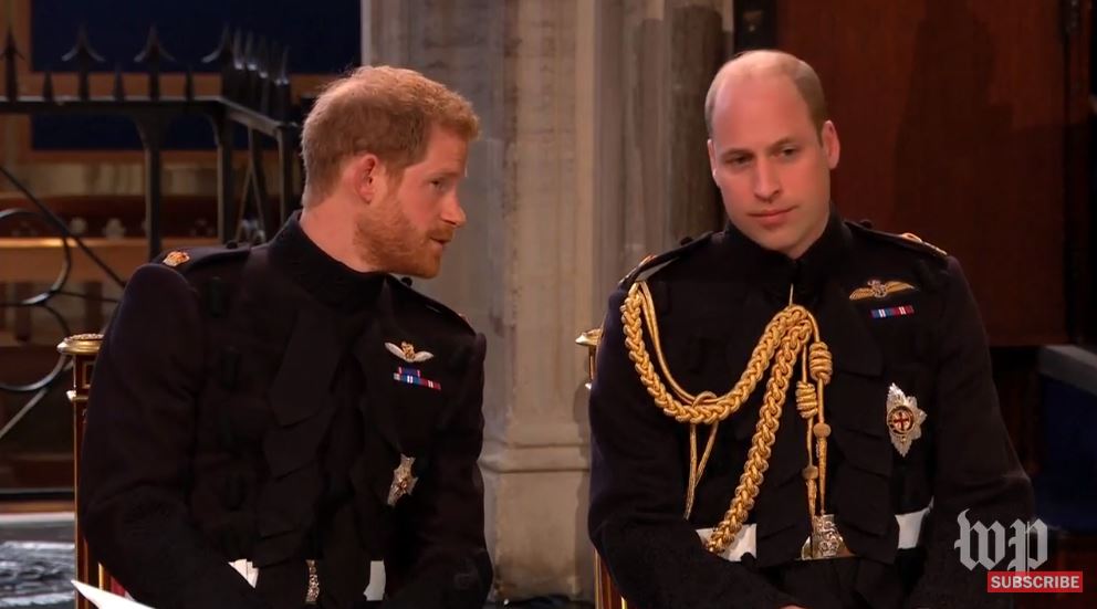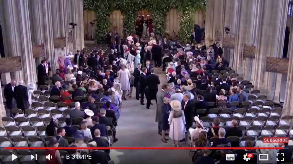 Принц Гарри с братом Уильямом в это время ждут появления Меган в часовне. И, видимо, немного нервничают. Играет орган.