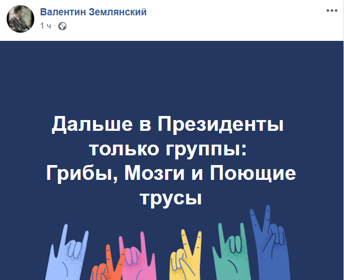 "Дальше в Президенты только группы: Грибы, Мозги и Поющие трусы", - написал Землянский в Facebook.