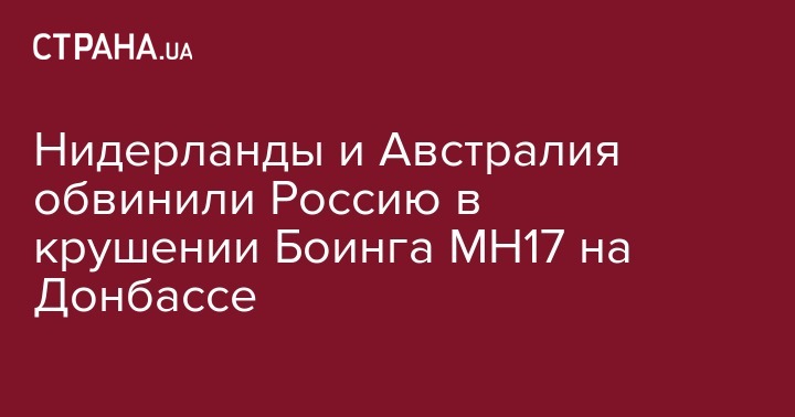 Власти Нидерландов и Австралии официально возложили на Россию ответственность за крушение малайзийского "Боинга" на Донбассе в 2014 году.