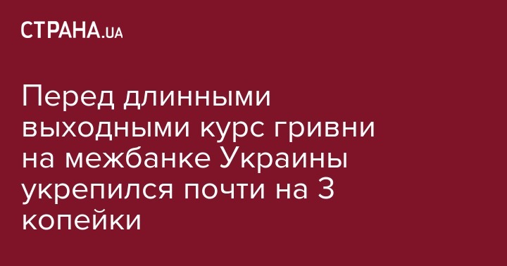 Перед длинными выходными курс гривни на межбанке Украины укрепился почти на 3 копейки
