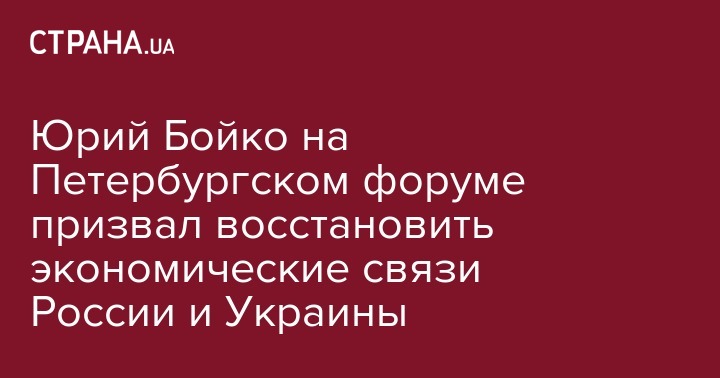 Необходимо восстановить экономическое сотрудничество Украины с Россией, так как это рабочие места и зарплаты наших сограждан и защитить интересы миллионов украинцев, работающих в РФ. Об этом заявил Сопредседатель фракции Оппозиционного блока Юрий Бойко на Петербургском международном экономическом форуме (ПМЭФ), его речь цитирует сайт партии.