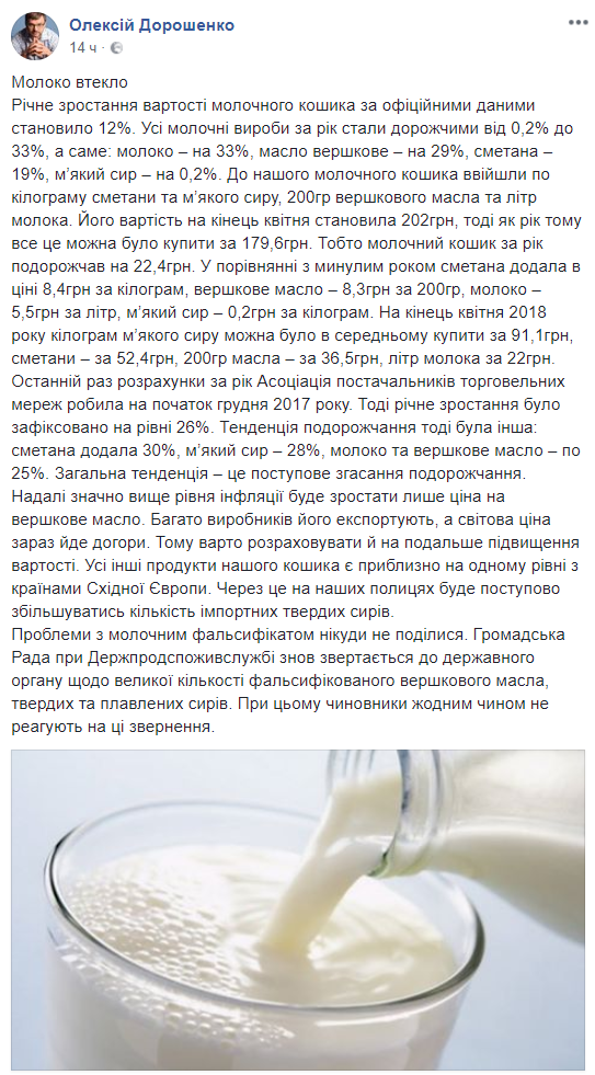 Об этом заявил директор Украинской ассоциации поставщиков торговых сетей Алексей Дорошенко на своей странице в Facebook.