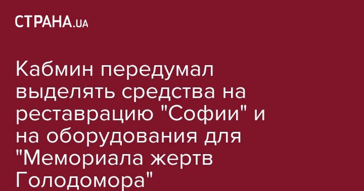 Кабинет Министров отменил принятое 16 мая решение о выделении 28,6 млн гривен на завершение ремонтно-реставрационных работ в Национальном заповеднике "София Киевская" и приобретение проекционного оборудования для Национального музея "Мемориал жертв Голодомора". Такое решение было принято сегодня на заседании Кабмина по предложению Министерства культуры, передают Українські Новини.