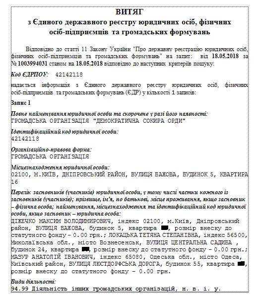 Все трое являются учредителями своей организации. Она была зарегистрирована прямо перед голосованием – 17 мая 2018 года. Об этом свидетельствуют данные реестра юридических лиц, который получила "Страна":