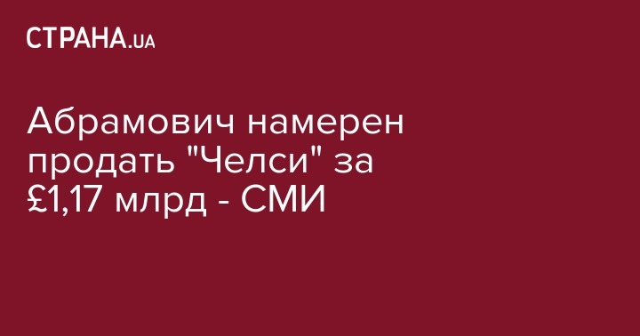 Российский бизнесмен Роман Абрамович в случае своего ухода из футбольного клуба Челси" намерен выручить £1,17 млрд с его продажи.