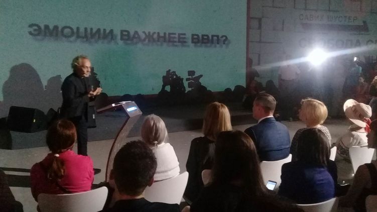 На эту презентацию собрался весь киевский бомонд. Главным образом из-за самого Савика Шустера, который ранее потерял в Украине работу, уехал из страны –+ а теперь внезапно вернулся назад.