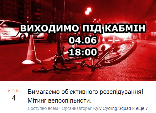 В понедельник, 4 июня, представители велоосообщества готовятся пикетировать Кабмин после ДТП с машиной предположительно из кортежа президента.