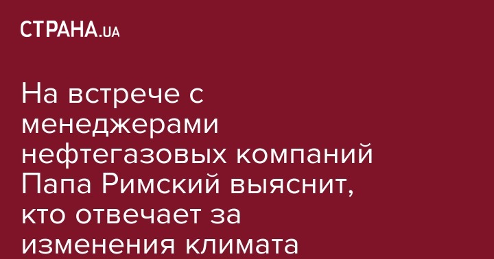 Папа Римский Франциск пригласил глав нефтяных компаний BP и Exxon обсудить проблему изменения климата. Об этом сообщает Associated Press со ссылкой на представителя понтифика.