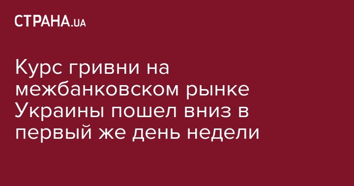 Курс гривни на межбанковском валютном рынке в понедельник снизился до 26,15 грн/$1 с 26,13 грн/$1 в предыдущий рабочий день, сообщили агентству "Интерфакс-Украина" дилеры коммерческих банков.
