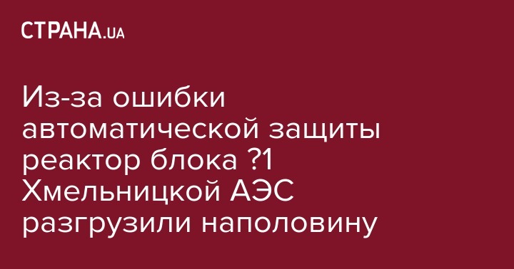 Хмельницкая атомная электростанция (АЭС) вечером 3 июня разгрузила блок №1 наполовину из-за ошибочного срабатывания защиты, сообщила пресс-служба Государственной службы ядерного регулирования Украины (ГИЯРУ).