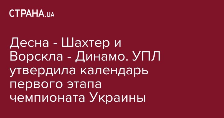 Десна - Шахтер и Ворскла - Динамо. УПЛ утвердила календарь первого этапа чемпионата Украины