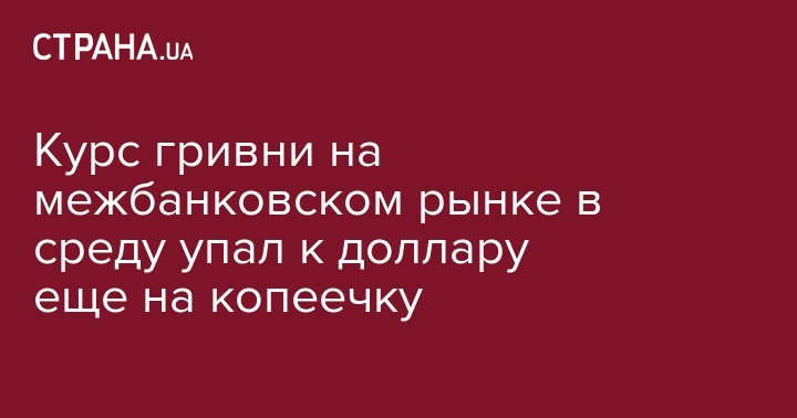 Курс гривни на межбанковском рынке в среду упал к доллару еще на копеечку