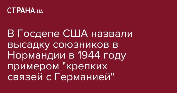 Пресс-секретарь Госдепа США Хизер Нойерт назвала высадку в Нормандии в 1944 году, которую называют D-Day, примером крепких связей США и Германии.