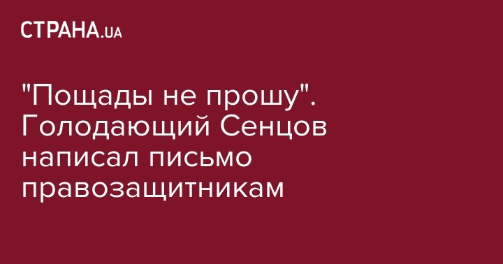"Пощады не прошу". Голодающий Сенцов написал письмо правозащитникам