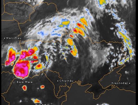 "12-13 июня в западных, северных и центральных областях грозы, местами град и шквалы 15-20 м/с, до конца суток 12 июня на Закарпатье и Прикарпатье сильные дожди, местами крупный град и шквалы 25-28 м/с",  - говорится в штормовом предупреждении № 7/12 о стихийных гидрометеорологических явлениях.