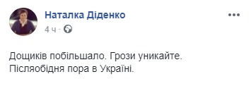 "Дождей стало больше. Избегайте гроз", - написала она в Facebook.