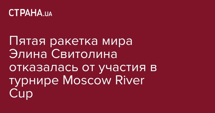 Знаменитая украинская теннисистка Элина Свитолина не будет принимать участие в турнире Moscow River Cup, который будет проходить в России с 23 по 28 июля.