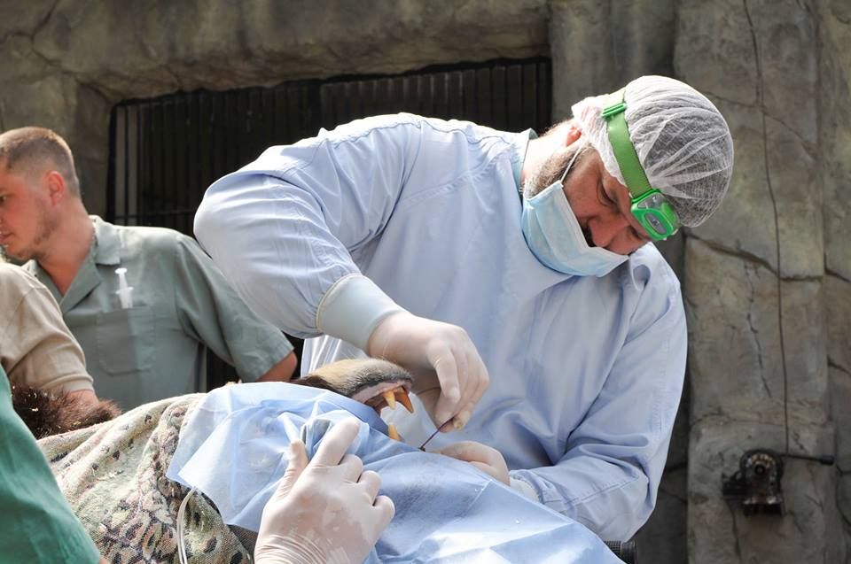 Для проведения процедур из города Днепр приехал ведущий специалист по стоматологии и ортопедии Сергей Ткаченко. Мишкам сделали маникюр, проверили общее состояние здоровья, взяли анализы и пробы, убрали зубной камень, а одному из них даже поставили пломбу.