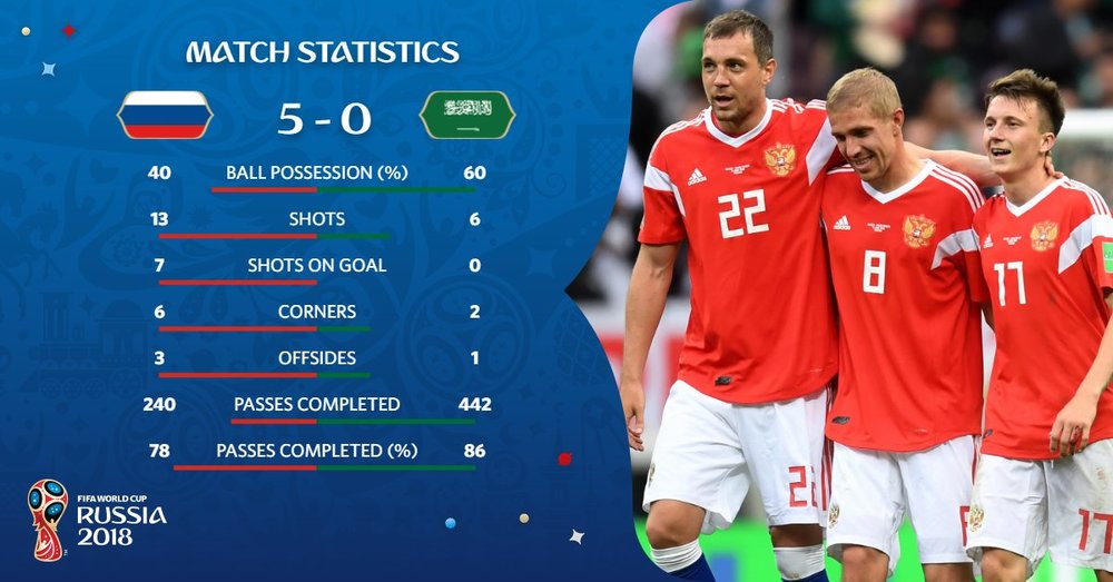 На поле выйдут команды России и Саудовской Аравии. Обе команды играют в группе А. Игра пройдет на стадионе "Лужники" в Москве, начало в 18.00 по киевскому времени. На поле будут присутствовать рефери из Аргентины и четвертый арбитр из Бразилии. Главным судьей назначен аргентинец Нестор Питана.