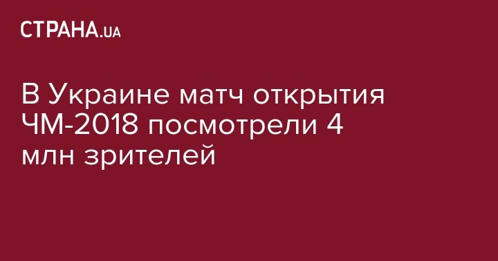 Матч футбольных сборных России и Саудовской Аравии, которым открывался Чемпионат мира 2018 года, посмотрели 4 миллиона украинских зрителей. Об этом сообщается на сайте телеканала Интер со ссылкой на данные телемониторинга.