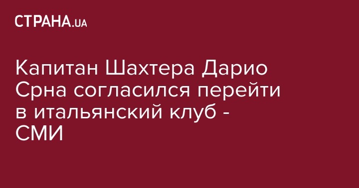 Капитан ФК "Шахтер" Дарио Срна согласился перейти в итальянский футбольный клуб "Кальяри", хоть ранее была информация о том, что новым клубом Дарио Срны станет греческий ПАОК.