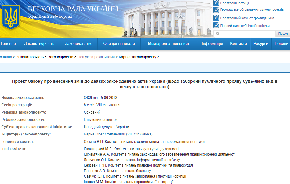 Законопроект №8489 был зарегистрирован на сайте парламента 15 июня.