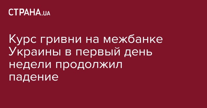 Курс гривни на межбанковском валютном рынке в понедельник снизился до 26,405 грн/$1 с 26,345 грн/$1 в предыдущий рабочий день, сообщили агентству "Интерфакс-Украина" дилеры коммерческих банков.