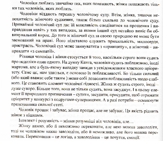 Среди утверждений львовского ученого то, что мужчина прощает и забывает, а женщина, как кошка, прощает, но не забывает. А также, что женщину невозможно переубедить, но можно ей завладеть.