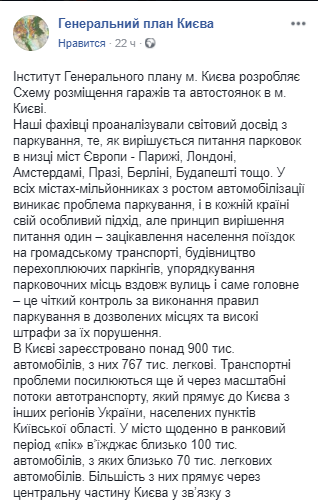Об этом в своем Facebook сообщает Институт Генерального плана Киева.