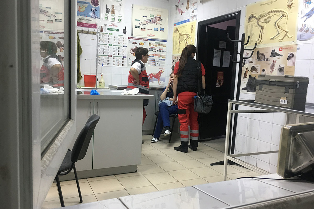 По словам полицейских, ночью клиника работает исключительно по звонку. Перед нападением в учреждении находились посетители с кошкой. Когда они выходили, в помещение ворвался мужчина, за которым якобы была погоня.