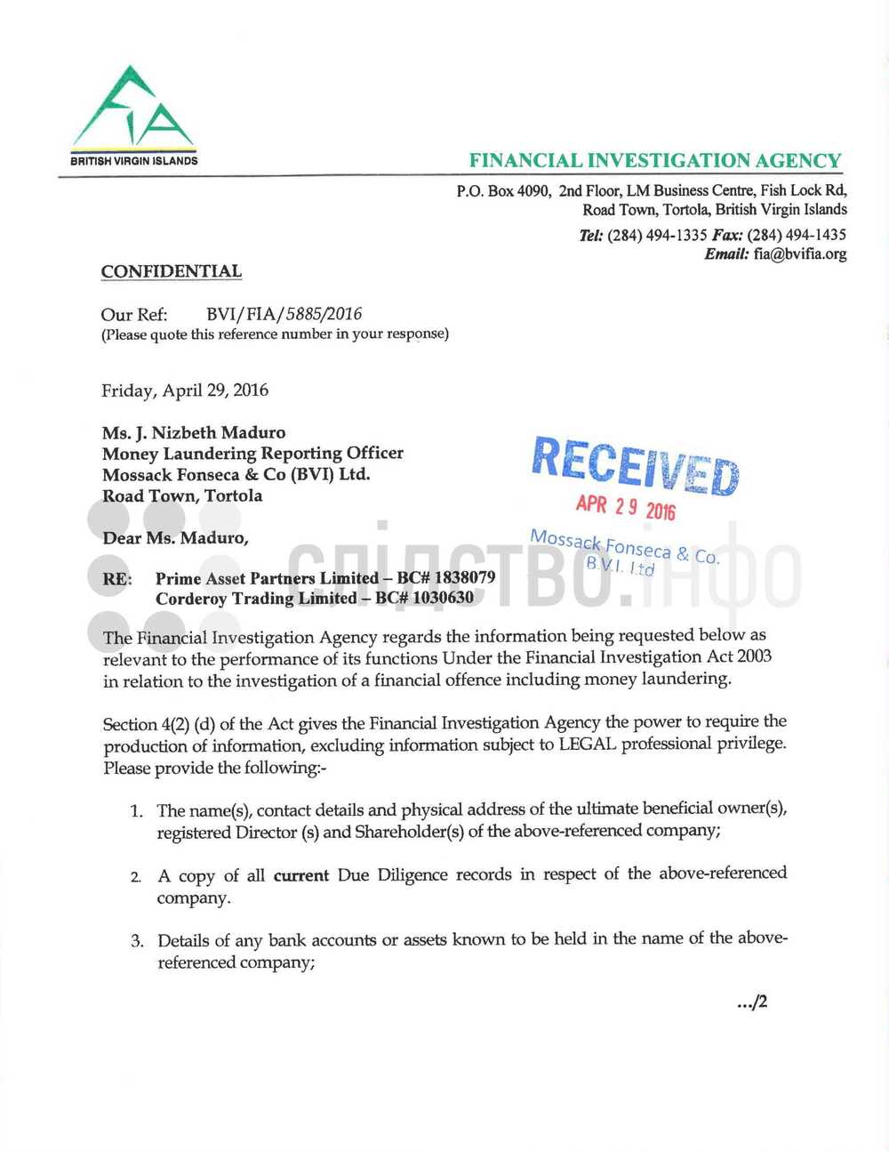"Полученные файлы не содержат никаких доказательств того, что адвокаты Порошенко предоставили затребованные документы. Наоборот, данные указывают на то, что Порошенко, как и раньше, зарегистрирован единственным акционером в документах Mossack Fonseca – именно такие данные были предоставлены следственным органам БВО на их запросы. Похоже, что изменения, которые так быстро пытались провести кипрские юристы Порошенко, так и не были внедрены", - отмечается в расследовании.