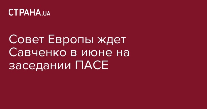 В Совете Европы ожидают, что народный депутат Украины Надежда Савченко, которая 25 мая вернулась в Украину, примет участие в заседании ПАСЕ, которое состоится в июне. Об этом сообщает официальный сайт партии "Батькивщина".