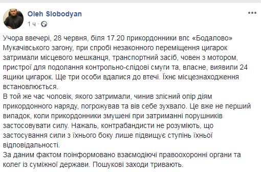 Об этом на своей странице в Facebook сообщает Олег Слободян, пресс-секретарь Государственной пограничной службы Украины.