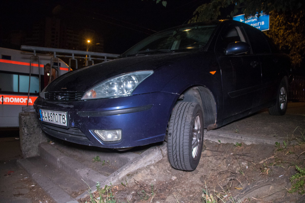 Сегодня, 29 июня, в Соломенском районе Киева водитель на Ford, выезжая со двора, зацепил две припаркованные машины и пытался скрыться, но повис на ступеньках тротуара.