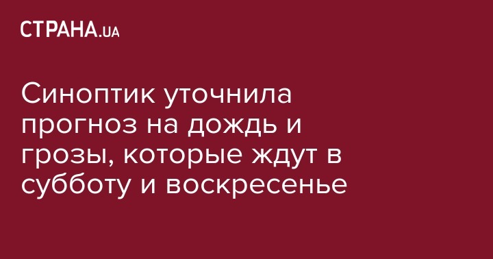 Синоптик уточнила прогноз на дождь и грозы, которые ждут в субботу и воскресенье
