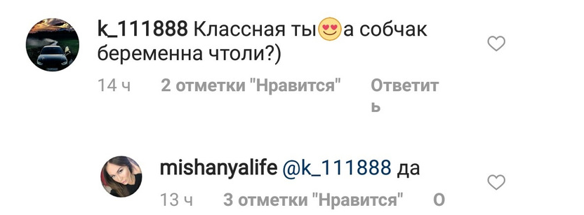 На вопрос в соцсети Instagram о том, ждёт ли ведущая Собчак второго ребёнка Мишина коротко ответила: "Да".