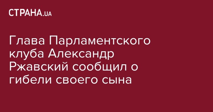 Глава Парламентского клуба Александр Ржавский сообщил о гибели своего сына