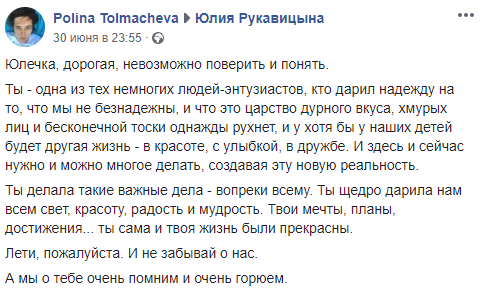 А спустя некоторое время начали появляться сообщения со словами сочуствия из-за смерти Рукавицыной.