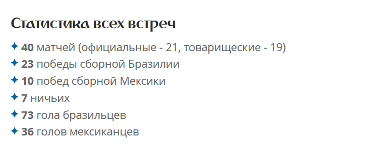 А если посмотреть на статистику личных встреч "ацтеков" и "селесао", то она выглядит так.
