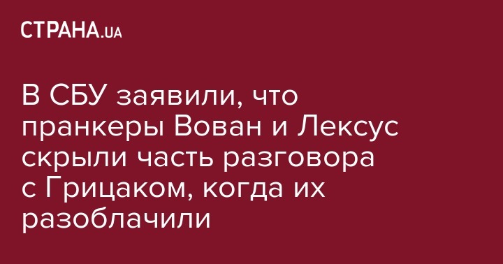 В СБУ заявили, что пранкеры Вован и Лексус скрыли часть разговора с Грицаком, когда их разоблачили