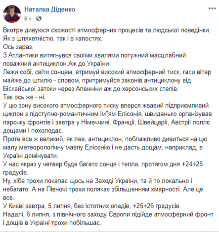 Однако антициклон все же мощнее. Однако, по словам Диденко, в Украине дожди доминировать не будут.