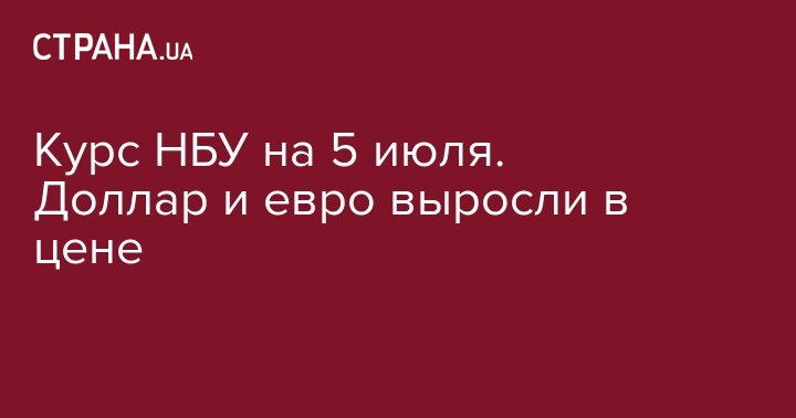 Курс НБУ на 5 июля. Доллар и евро выросли в цене