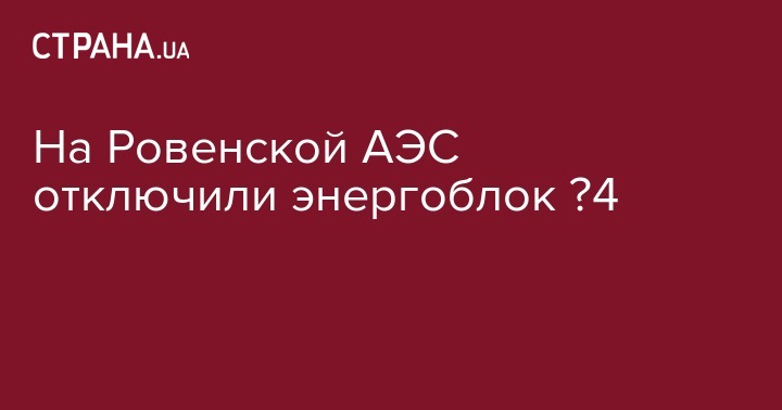В воскресенье, 8 июля, в 00:43 энергоблок №4 Ривненской АЭС отключили от энергосети для проведения капитального планово-предупредительного ремонта, длительностью в 65 календарных дней.