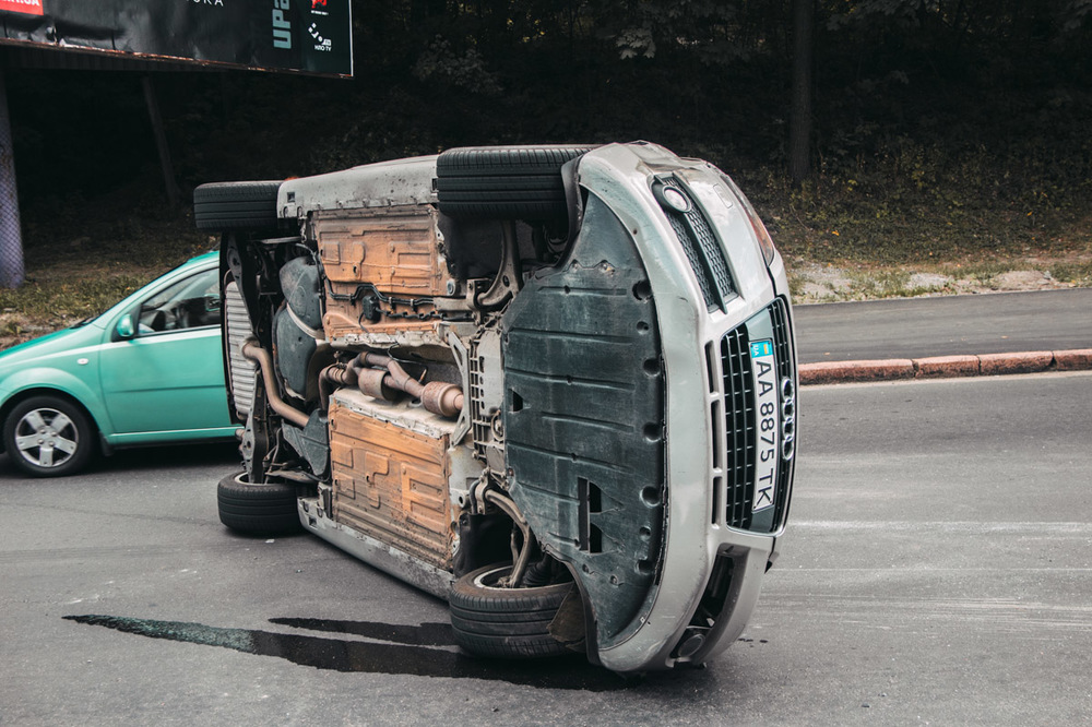 В Киеве дама за рулем устроила тройное ДТП, кувыркаясь по улице на Audi
