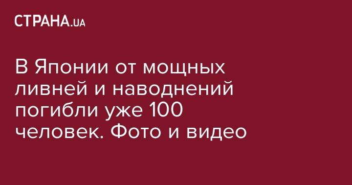 В Японии число людей, погибших от рекордных дождей выросло до 100, тысячи спасателей ищут 12 человек, которые пропали без вести. Об этом сообщает Channelnewsasia.