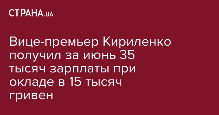 Заработная плата вице-премьер-министра Вячеслава Кириленко за июнь составила 43,6 тысячи гривен. Об этом сообщают Украинские Новости, которые располагают ответом секретариата Кабинета Министров на запрос.
