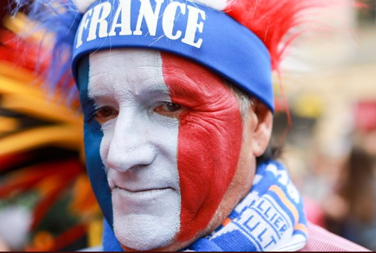 20.00 Болельщики сборной Франции в предвкушении поединка. Не отстают от них и фанаты бельгийской команды.
