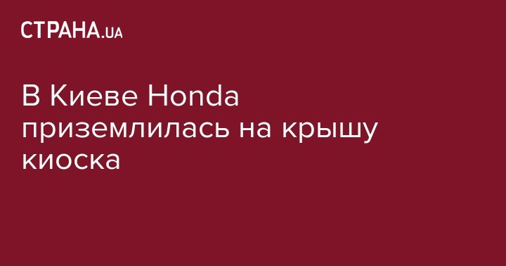 Об этом сообщает Эспресо ТВ. Уточняется, что на перекрестке проспекта Маяковского с улицей Драйзера автомобиль Honda влетел в круг для разворота, врезался в отбойник и упал на крышу киоска.